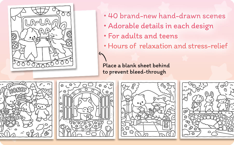 • Single-sided pages (prevents bleed-through) - (when using markers, please put a blank sheet behind the page you are coloring).